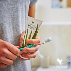 ” فوريفر برايت ” معدّ ليلائم جميع أفراد العائلة من الكبار حتى الصغار إذْ تتميّز المواد الخام التي تدخل في تركيبته بجودتها العالية كما أنّه مثالي للنباتيين بما أنّه خال من المواد الحيوانية الجانبية , مكوّنه الأساسي هو الألوّة ومادة الدنج أو العكبر ذات مواصفات المضادة للالتهاب والمفيدة للثّة وباطن الفم التي تمنع تكوّن البكتيريا والجير , كما أنّه يحتوي على منكّهات طبيعيّة بطعم النعناع التي تشعرك بالانتعاش